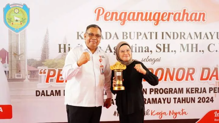 KORANMANDALA.COM – Bupati Indramayu, Nina Agustina raih penghargaan sebagai tokoh penggerak Donor Darah dari Palang Merah Indonesia (PMI).